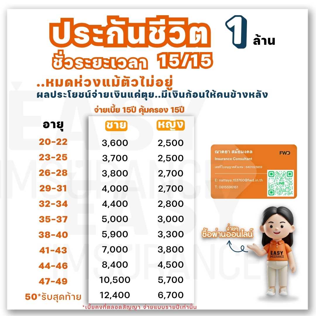 การทำ ประกันชีวิต เป็นการวางแผนอนาคตที่ดี เพื่อครอบครัว เพราะทำคนเดียวแต่สามารถ ช่วยชีวิตทีเ่หลือในครอบครัว ได้อีกมาก หากอยาก ทำประกันชีวิตทุนสูงๆเป็นล้าน แต่มีงบน้อย และ ไม่ต้องการสัญญาผูกมัดระยะยาว โดยทำผ่านตัวแทนได้ เราแนะนำ ประกันชีวิต fwd แบบชั่วระยะเวลา ที่จ่ายสัญญาแบบปีต่อปี ได้สูงสุด 15ปี