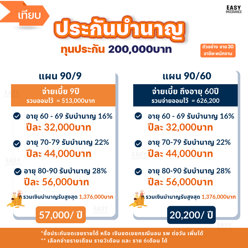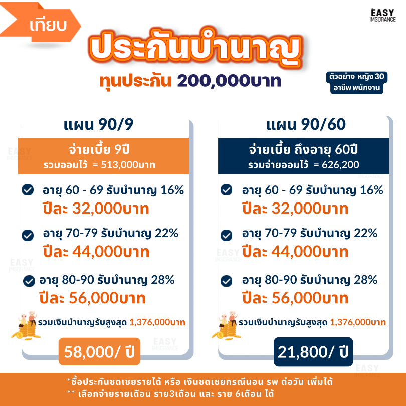 | อายุรับประกัน | แบบ 90/9 รับอายุ 20-50ปี แบบ 90/60 รับอายุ 20-55ปี |