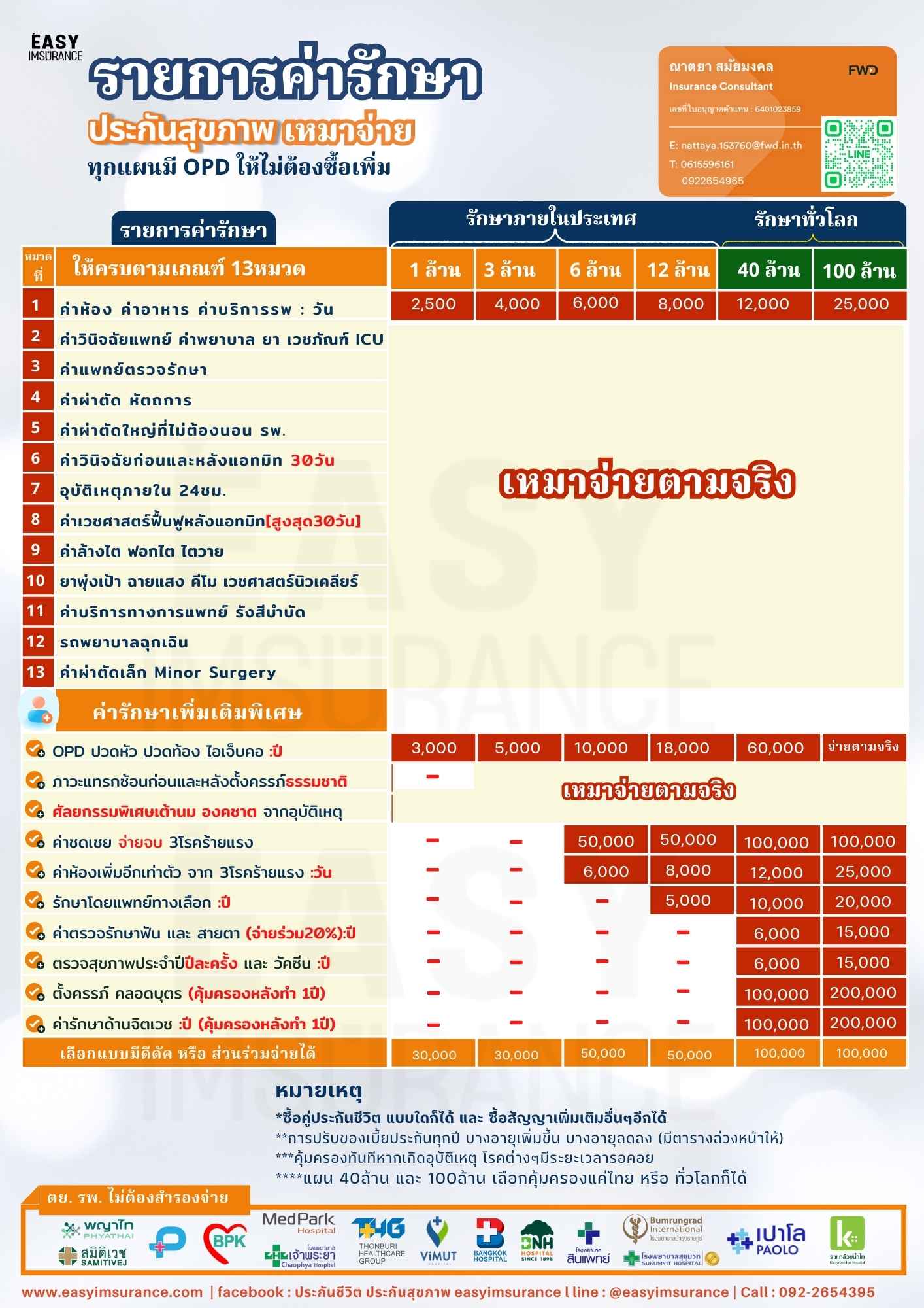 หรือบางคนอยากได้เหมาทุกรายการ เพราะไม่อยากมานั่งลุ้นตอนบิลออก ว่าตนเองต้องจายเพิ่มเท่าไหร่ อย่าลืมว่าหากเราต้องจ่ายทั้งเบี้ย และส่วนเกินค่ายาค่าหมอ ก็อาจจะทำให้การเงินสะดุด ส่วนเรื่องค่าห้อง เป็นรายการที่แทบไม่มีส่วนต่าง หรือถ้ามีก็น้อยมาก เพราะตัวแทนสามารถขอส่วนลดให้กับลูกค้าได้